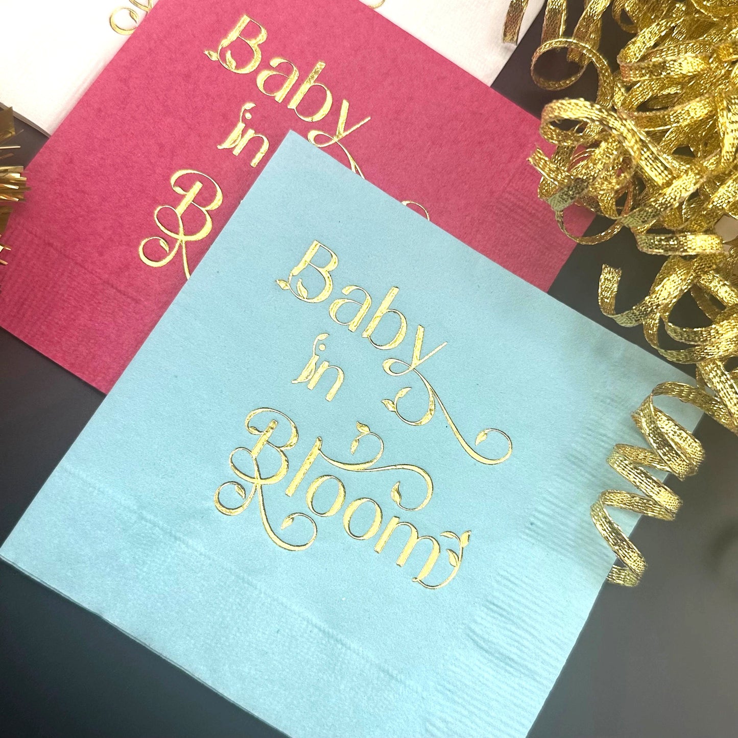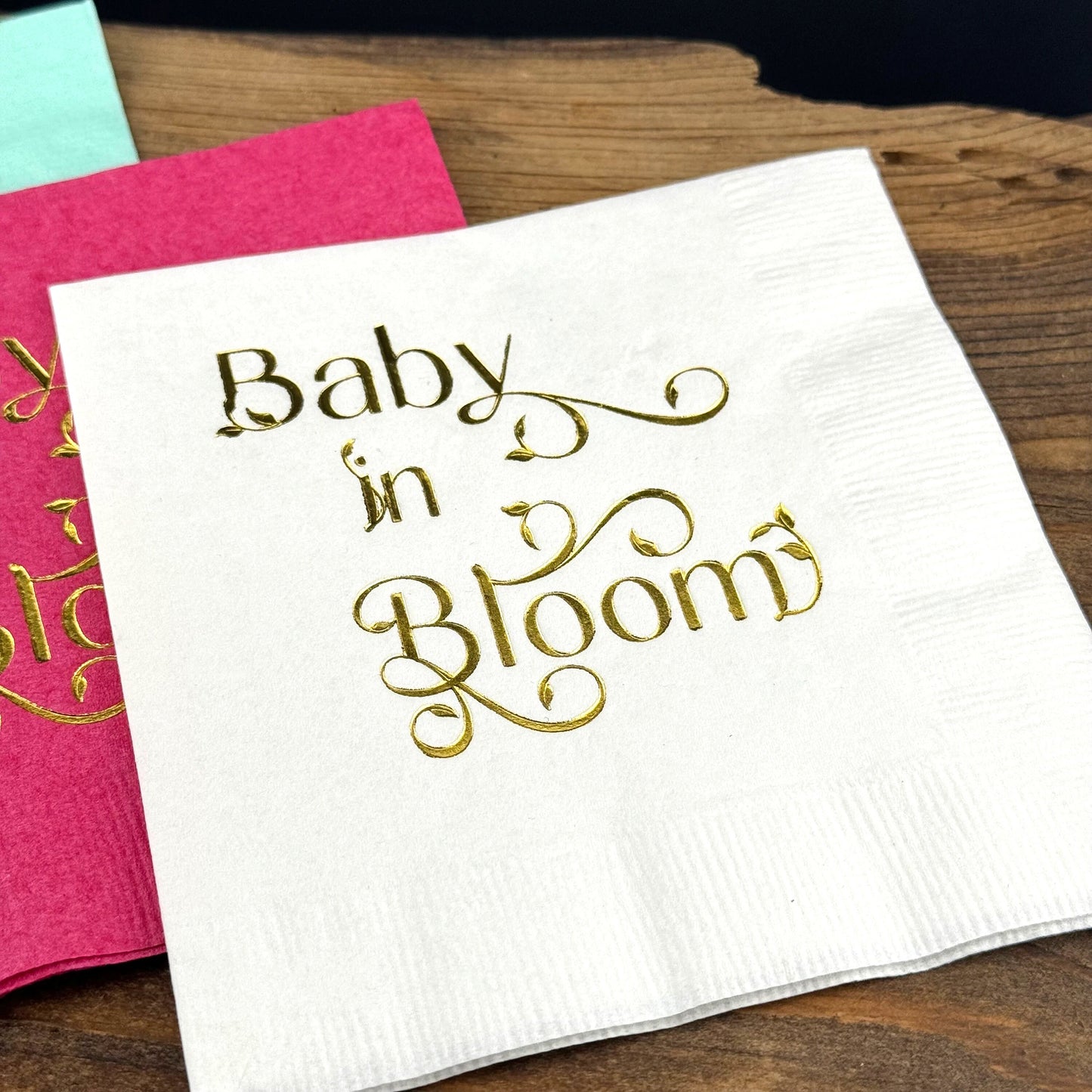 Baby Shower Napkin, Baby in Bloom, Cocktail Napkin, Gender Reveal Beverage Napkin, Baby Shower Decor, Table Decoration