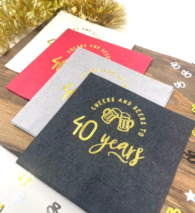 To complete your celebration, check out our matching balloons and napkins in our shop, designed to perfectly complement this theme. Please note, these cups are not customizable. Raise a toast to 40 fantastic years and make your milestone event unforgettable with our Cheers and Beers to 40 Years Stadium Cups!