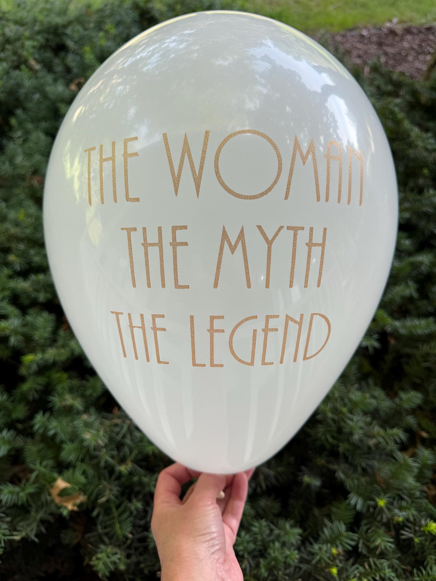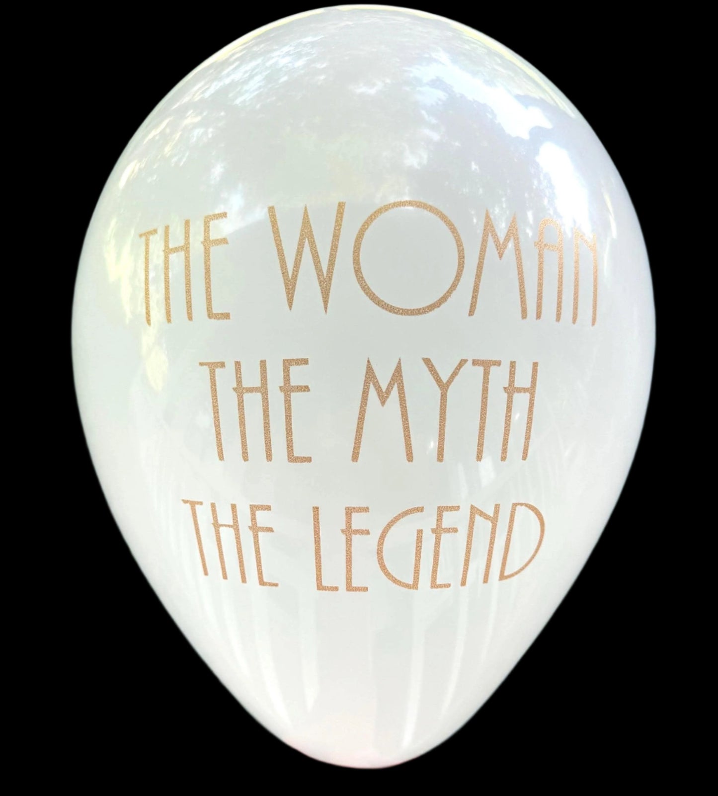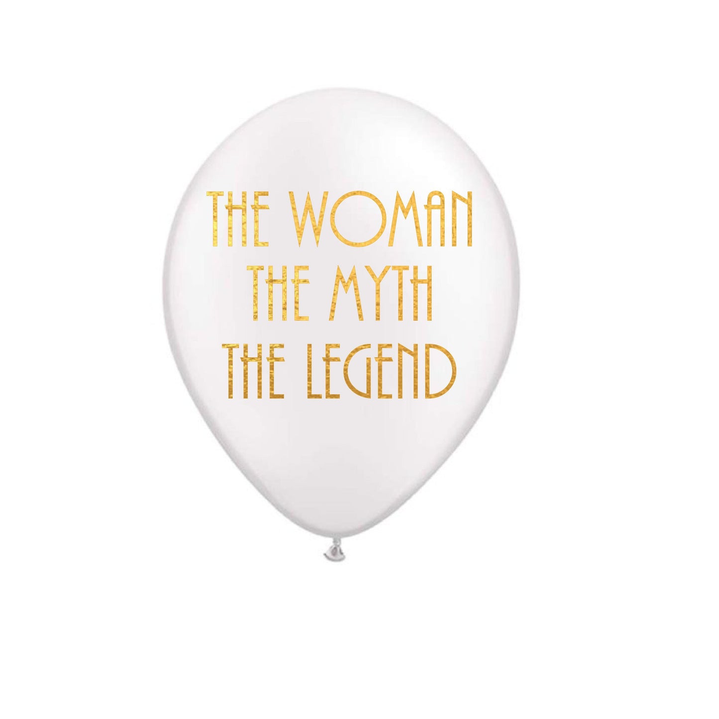 Celebrate her special day with style using our "The Woman, The Myth, The Legend" Balloons! Perfect for birthday parties, retirement celebrations, or any momentous occasion, these balloons are sure to make a statement. Measuring 12 inches in length when inflated, they feature a sleek white design with gold metallic font, adding a touch of elegance to your party décor. Whether filled with helium for a floating display (lasting 8-12 hours) or air for long-lasting decorations, these balloons bring a bold and fun vibe to any event. Available in white or black with gold metallic ink, you can choose the color that suits your celebration best. Matching napkins are also available in our shop to complete the theme.
