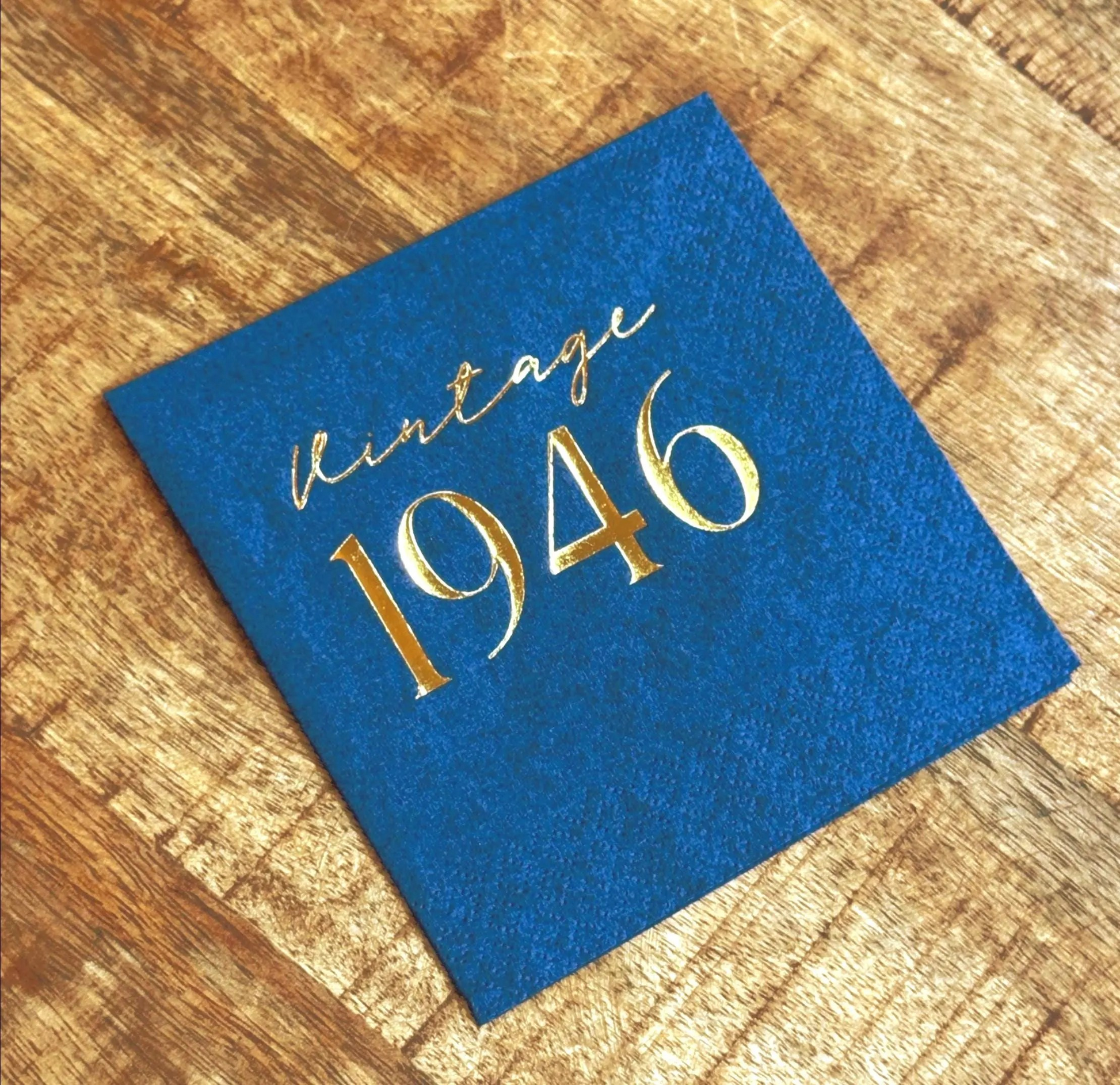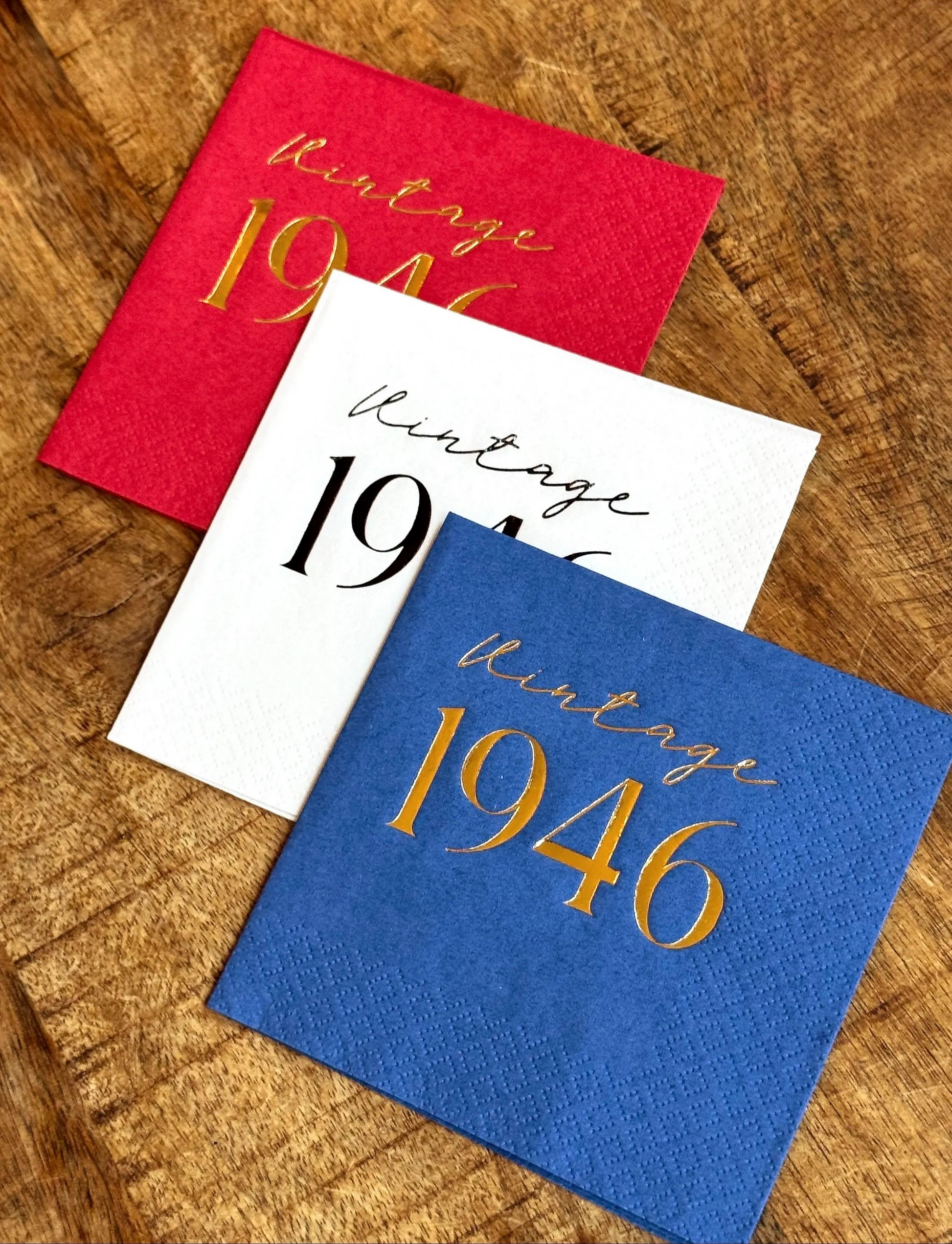 Vintage 1946 Napkins – Custom 80th Birthday Cocktail Napkins with Foil Options | 3-Ply Set of 20