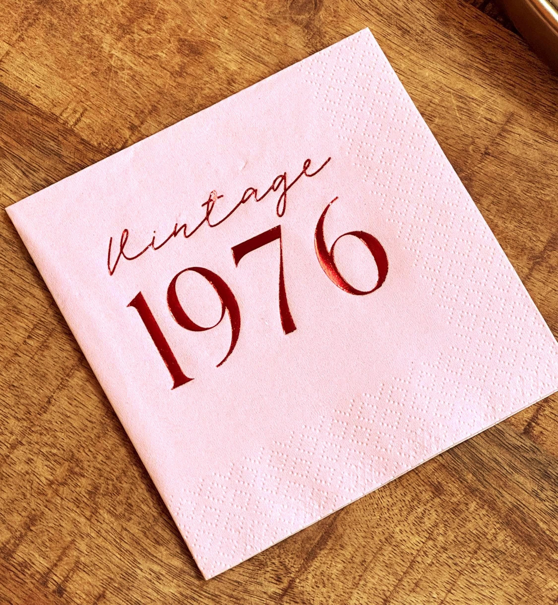 Vintage 1976 Napkins – Custom 50th Birthday Cocktail Napkins with Foil Options | 3-Ply Set of 20