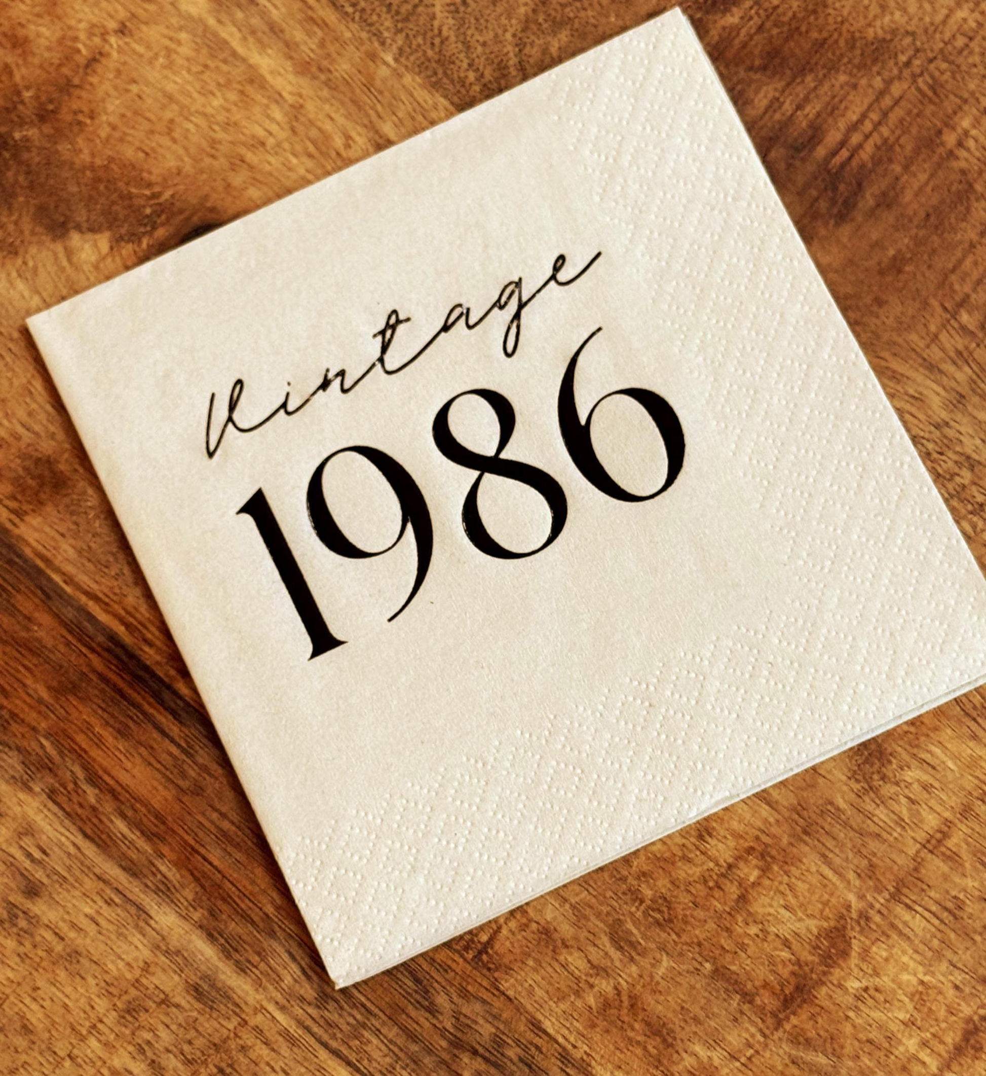 Vintage 1986 Napkins – Custom 40th Birthday Cocktail Napkins with Foil Options | 3-Ply Set of 20